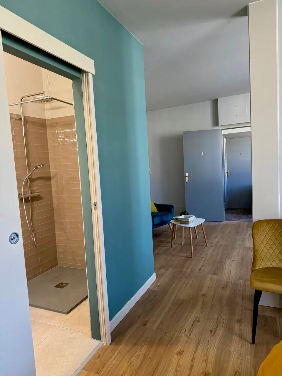 Rénové avec soin, cet ancien hôtel-restaurant de 800 m² offre aujourd'hui 12 espaces privés, chacun doté d'une salle d'eau et certains d'un salon attenant. L'objectif était de créer un lieu de vie commune tout en garantissant l'intimité de chacun.